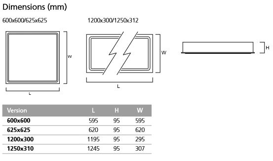 Architectural surface mounted or suspended back-lit LED panel with even homogenous light distribution High lumen efficacy of up to 144lm/W Uses latest technology of reflector and highly transmissive LED diffuser material to maximise output Good chromaticity (MacAdam SDCM3) DALI as standard Available in low glare UGR<18 version and Emergency versions Available in 3000K or 4000K Long lifetime: 60,000hrs (L90B10) Suspension kits available as accessory