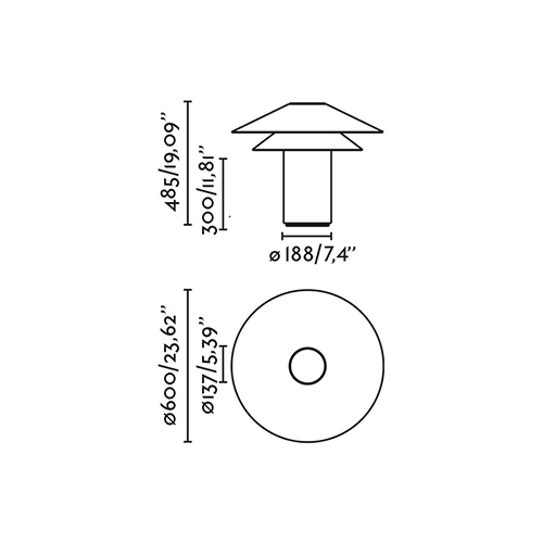 D1: Ø600mm D2: Ø137mm H: 485mm